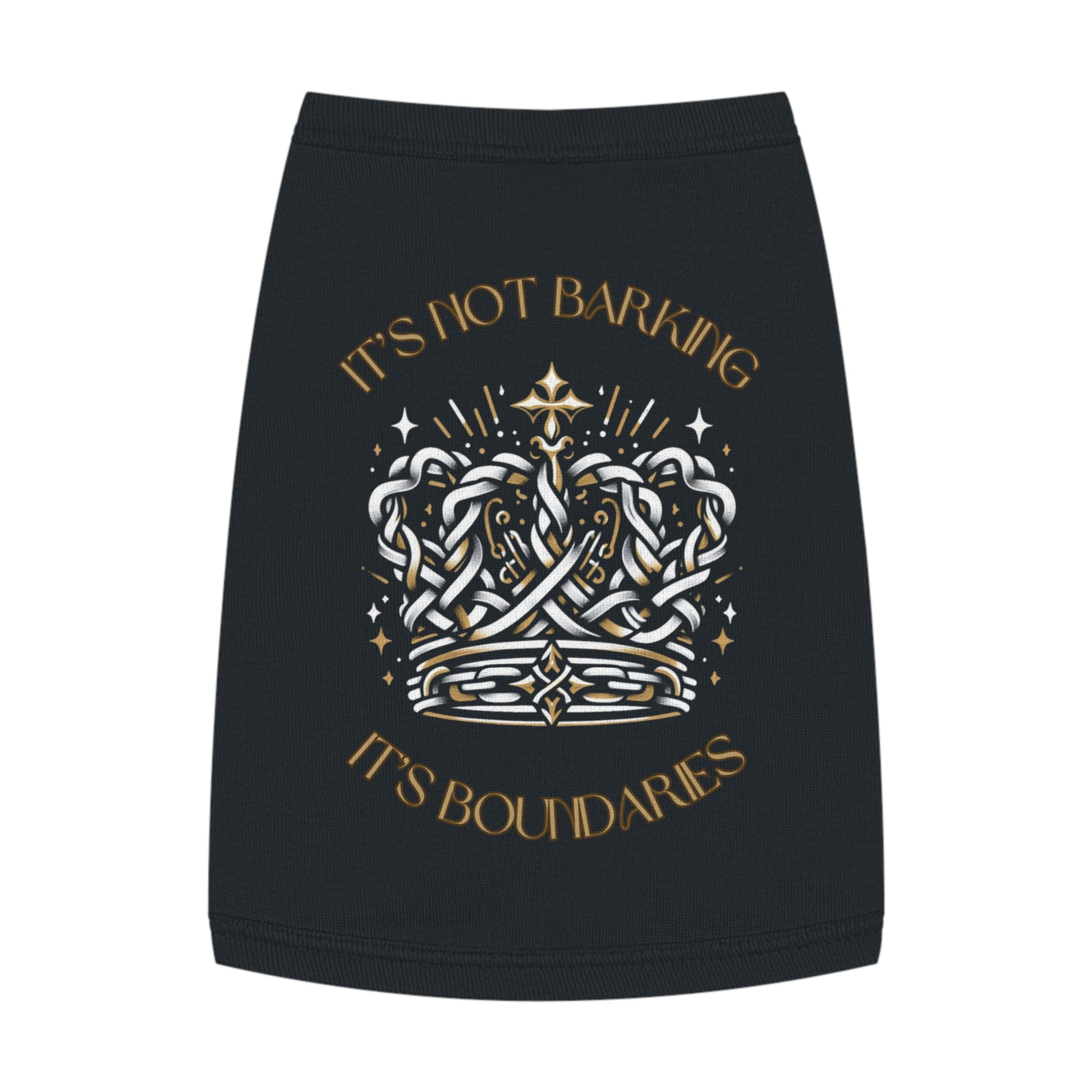 “It’s not barking, it’s boundaries.” And the crown? Made of chain-link, because this pup means it. This tank is for the protective, opinionated, zero-nonsense dog who barks for justice, not chaos. It’s not misbehavior — it’s healthy expression with a little extra growl.