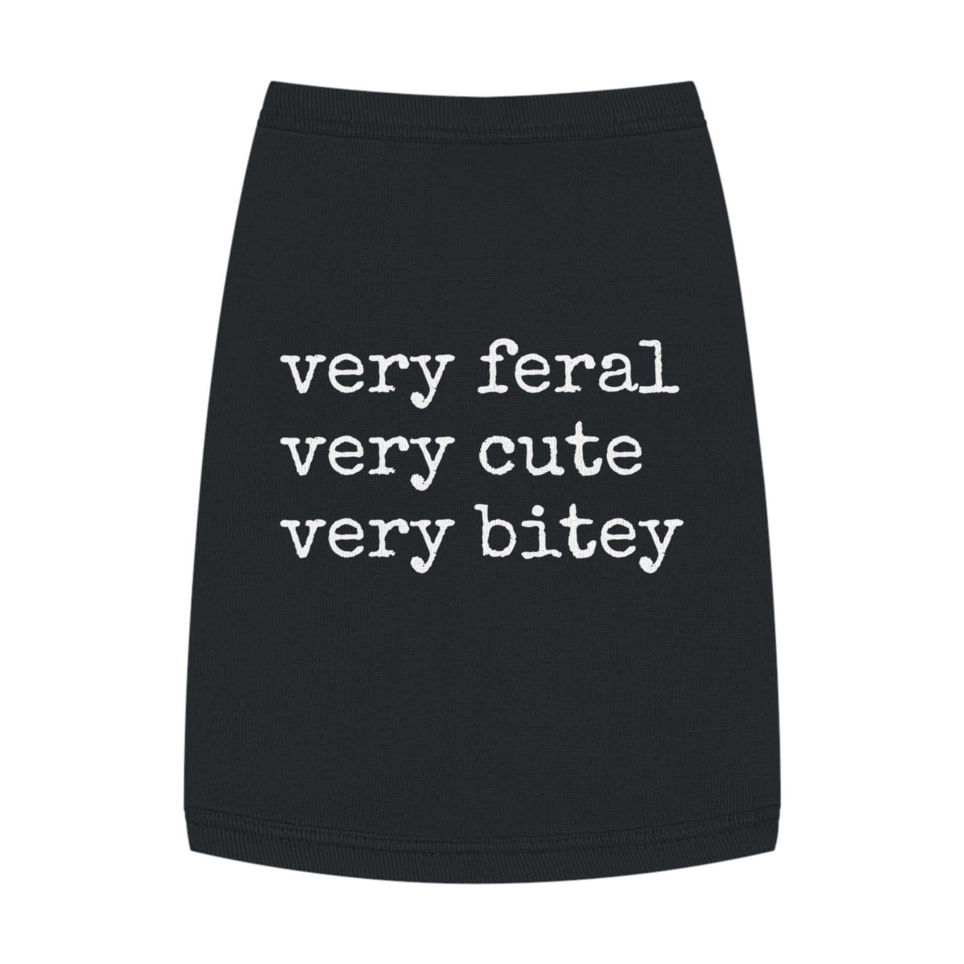 “Very feral. Very cute. Very bitey.” This tank is made for small gremlins with sharp teeth and zero chill. Whether they’re purring menacingly or barking with sass, your pet wears this like a warning label — and they mean every word.